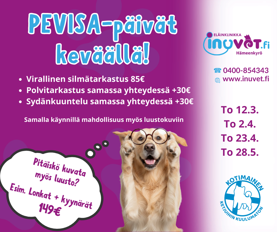 Kevät tuo mukanaan myös suositut PEVISA-päivät. Tarjoamme virallisia terveystarkastuksia useana ajankohtana kevään aikana – varaa paikkasi ajoissa, sillä ajat täyttyvät nopeasti.