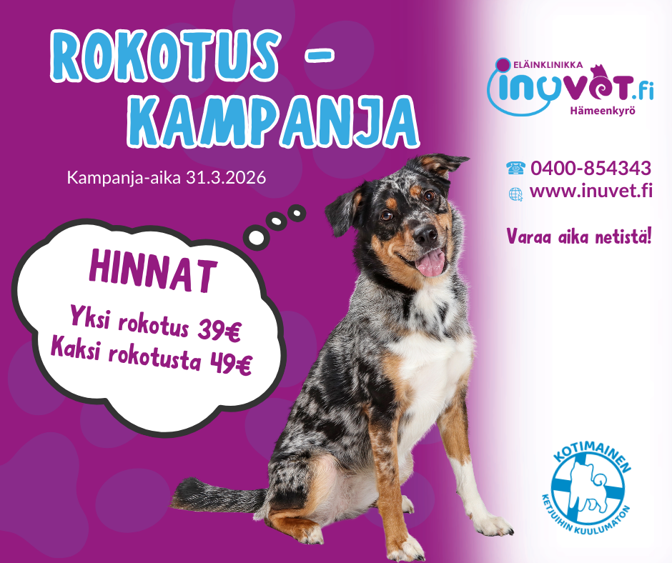 Pidetään lemmikit turvassa ja terveinä — varaa rokotusaika kätevästi netistä kampanjat käyntisyyllä!
