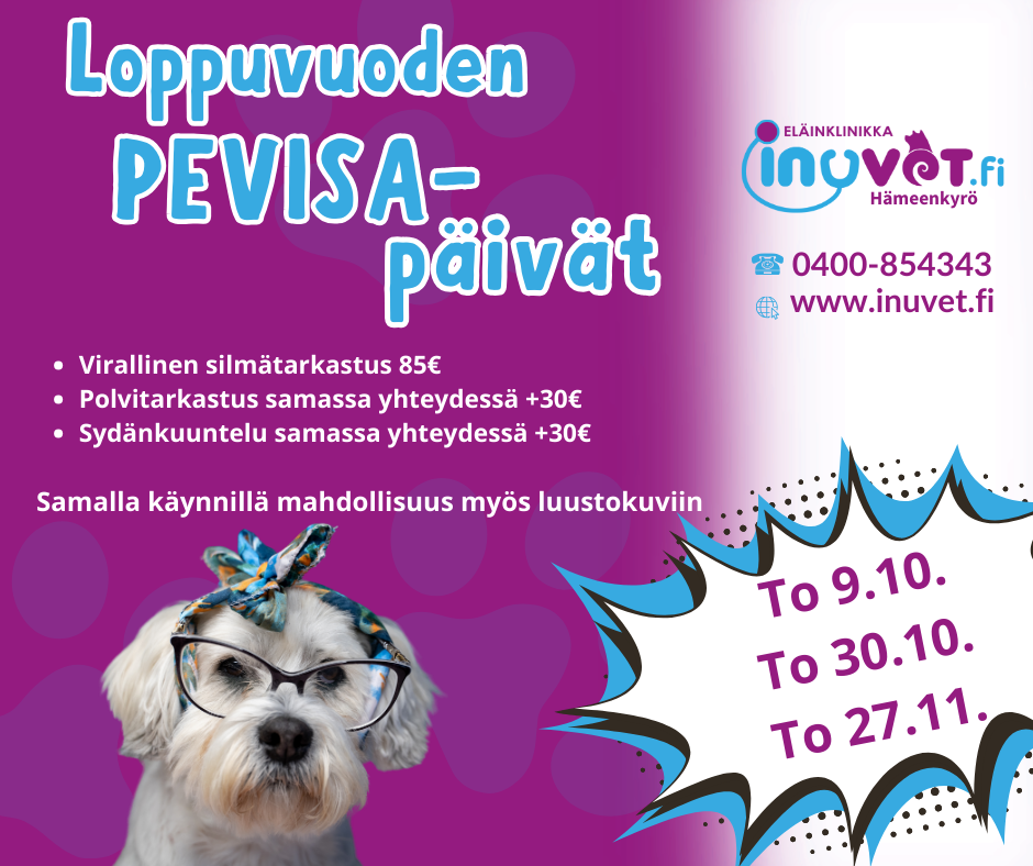 Huom! Joulukuussa ei ole PEVISA-päivää, joten nyt on hyvä aika varata paikka loppuvuoden tarkastuksiin.